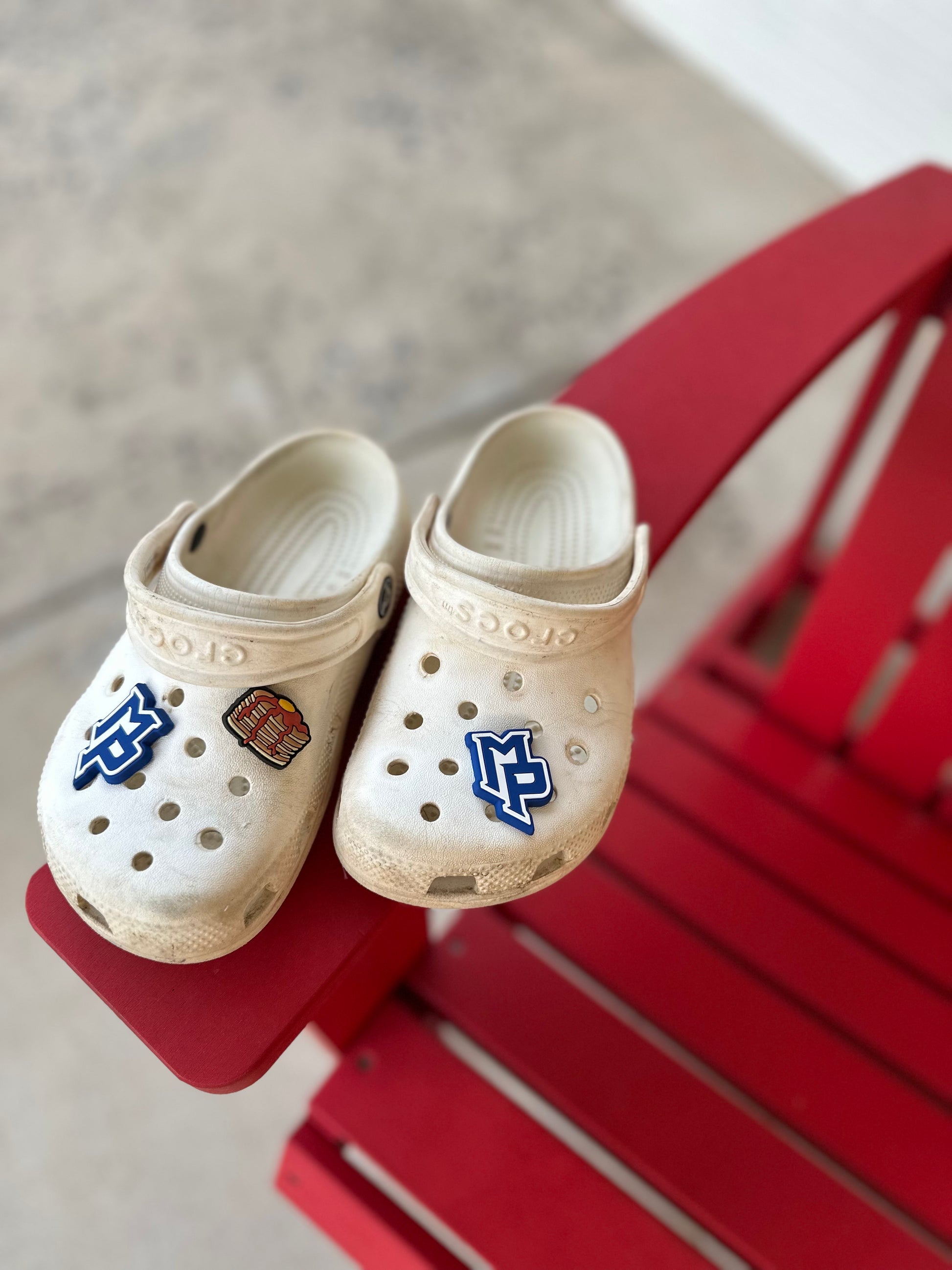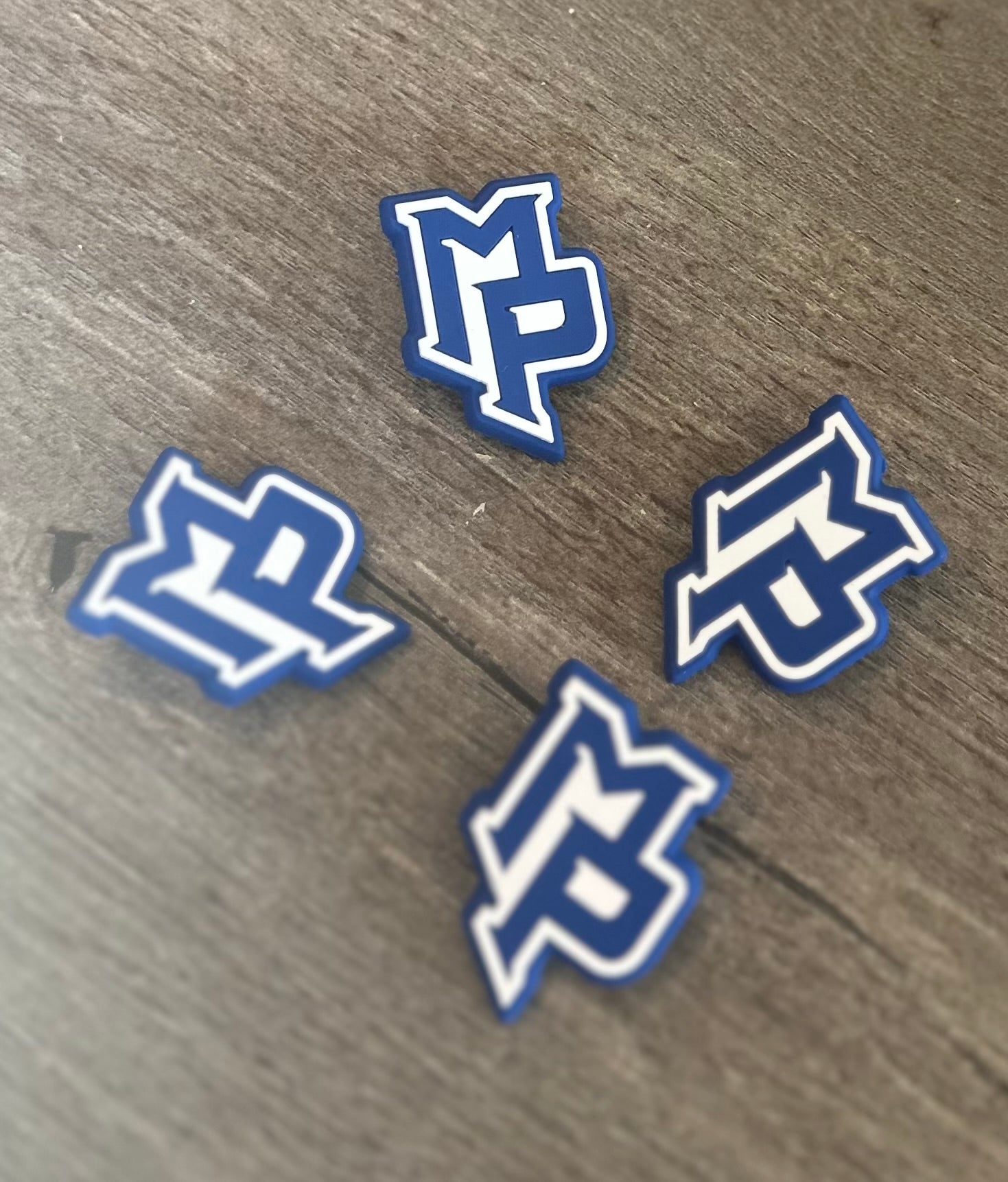 Add some school spirit to your step with this custom Mount Pisgah blue and white Croc charm. A fun and easy way to show off your Patriot pride every day!